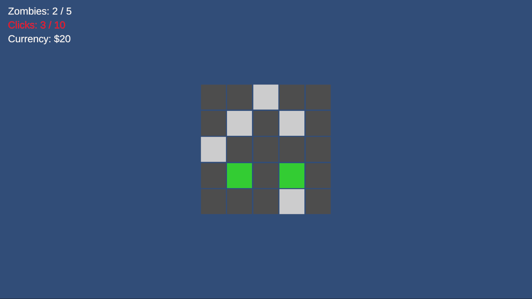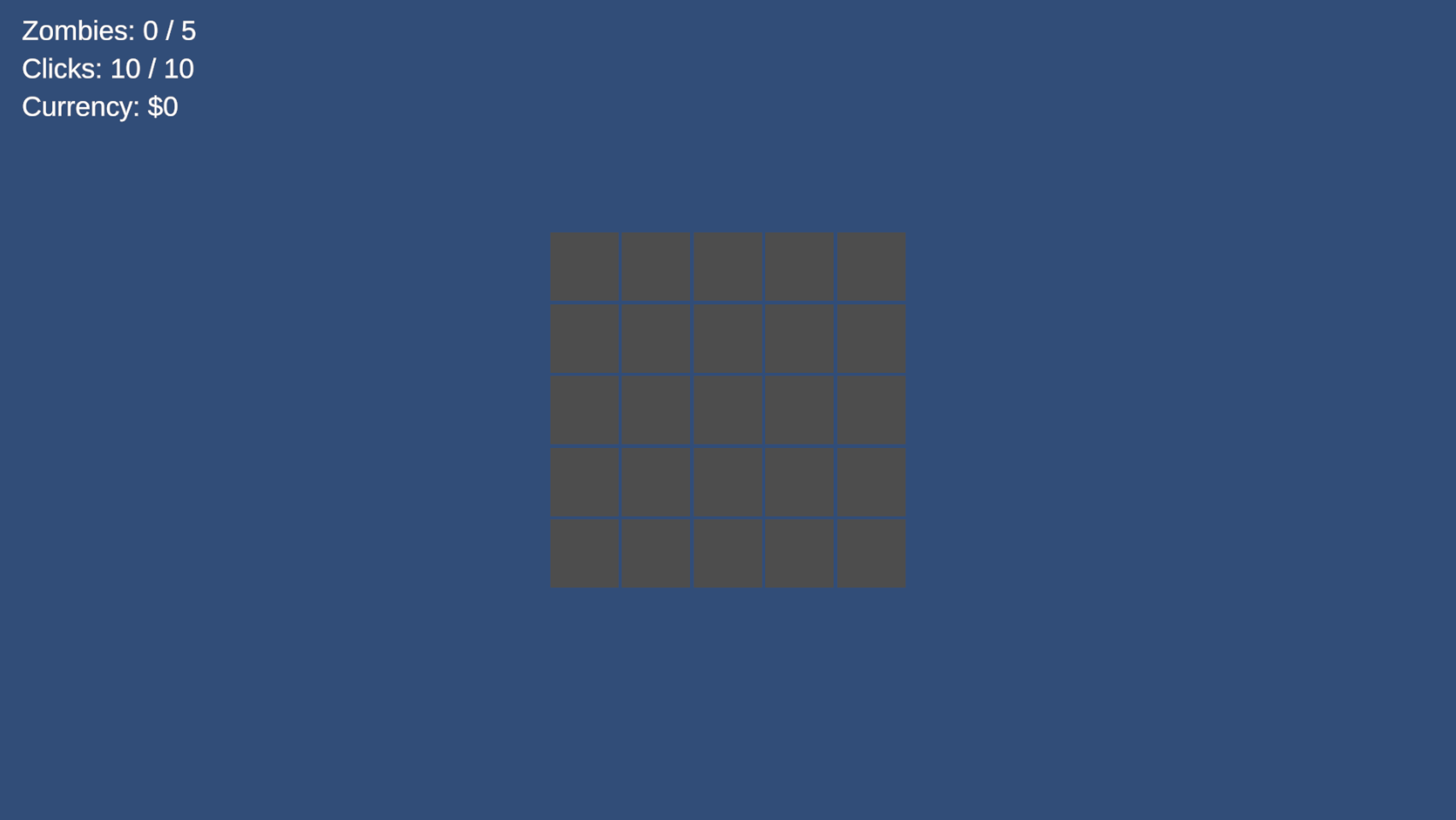 - Zombies are randomly distributed across a grid and hidden from view.